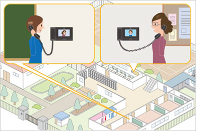 教室と校内の各部屋との間で連絡を取ることができます。お互いの顔を見ながらスムーズに意思疎通することも可能です。